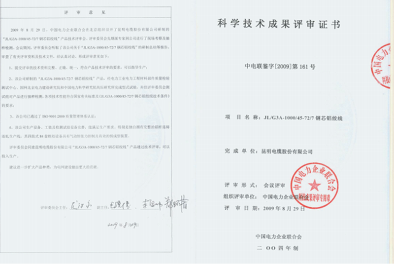 7、2008年8月首批研制乐成国家电网锦屏一苏南±800kv特高压直流输电工程用900mm?钢芯铝绞线。